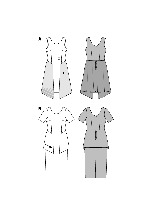 The overskirt of dress view B is like a peplum and is in perfect harmony with the shorter sleeves and midi length of this chic style.