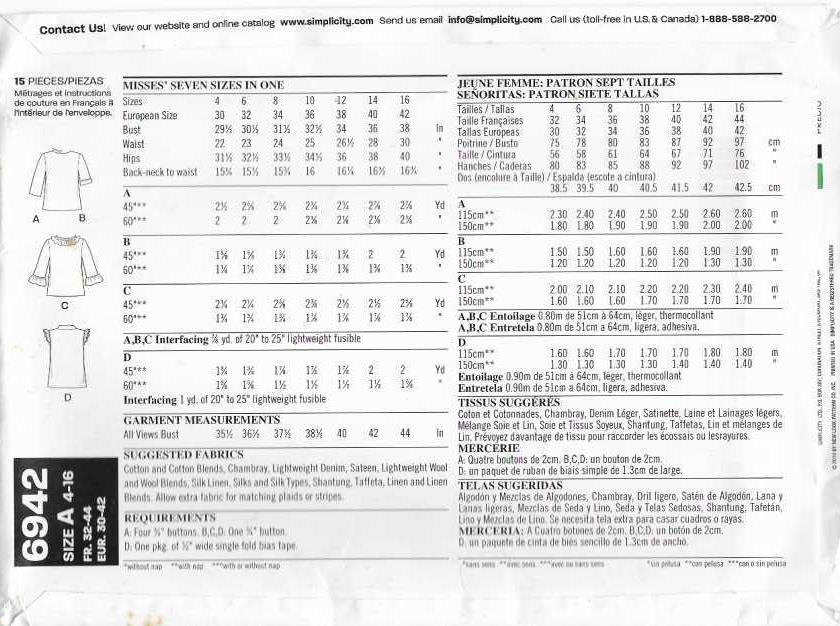 73 NEW LOOK 6942: JACKET SIZE 4-16
