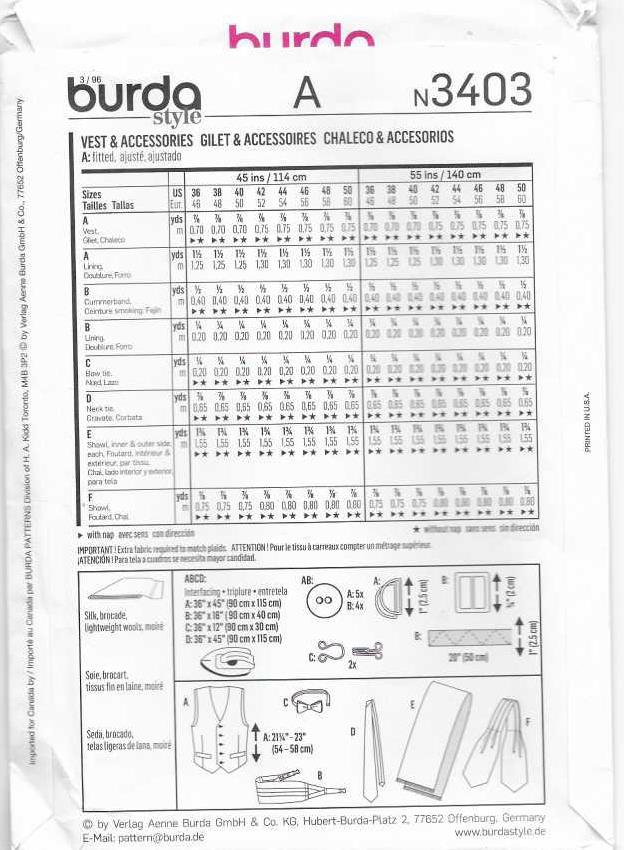 Classic men's waistcoat/vest, close-fitting, with welted pockets, lining and tabs. Plus extra accessories for spezial occasions: cummerbund, bow-tie, neck-tie and 2 scarves