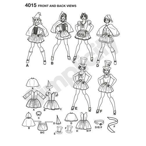 Includes dress with short flirty skirt, cape, hat, hair bow, apron, and belt.