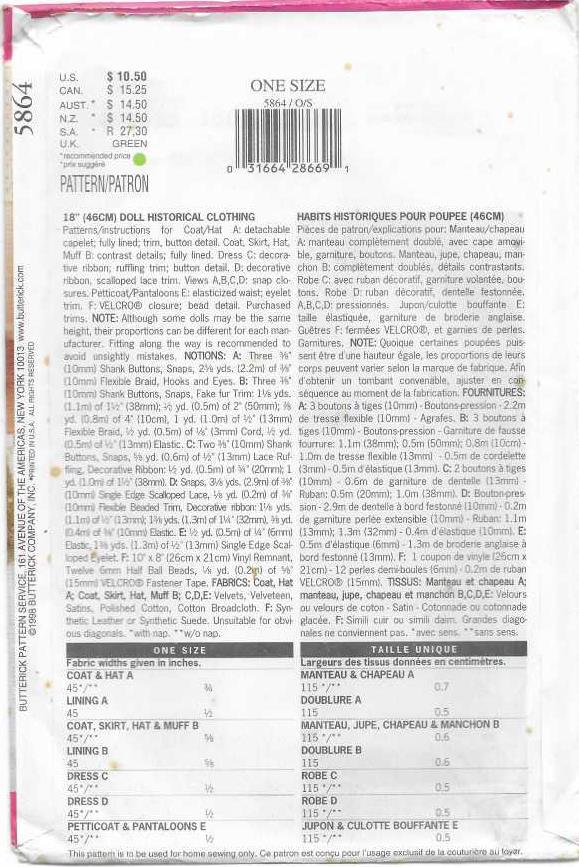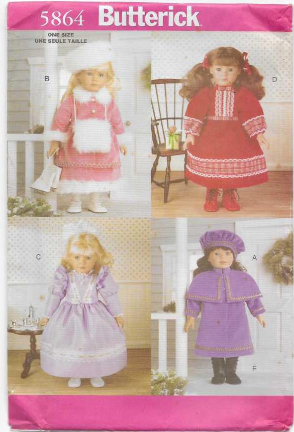 The Butterick 5864 is a cherished out-of-print sewing pattern that offers a delightful collection of vintage-style clothing for 18-inch dolls, such as American Girl dolls. Originally released in 1998, this pattern allows crafters to create a range of historically inspired outfits, capturing the charm of mid-20th-century fashion.