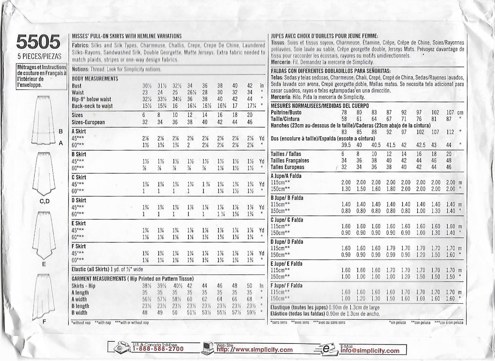 C62 SIMPLICITY 5505: SKIRT SIZE 14-20