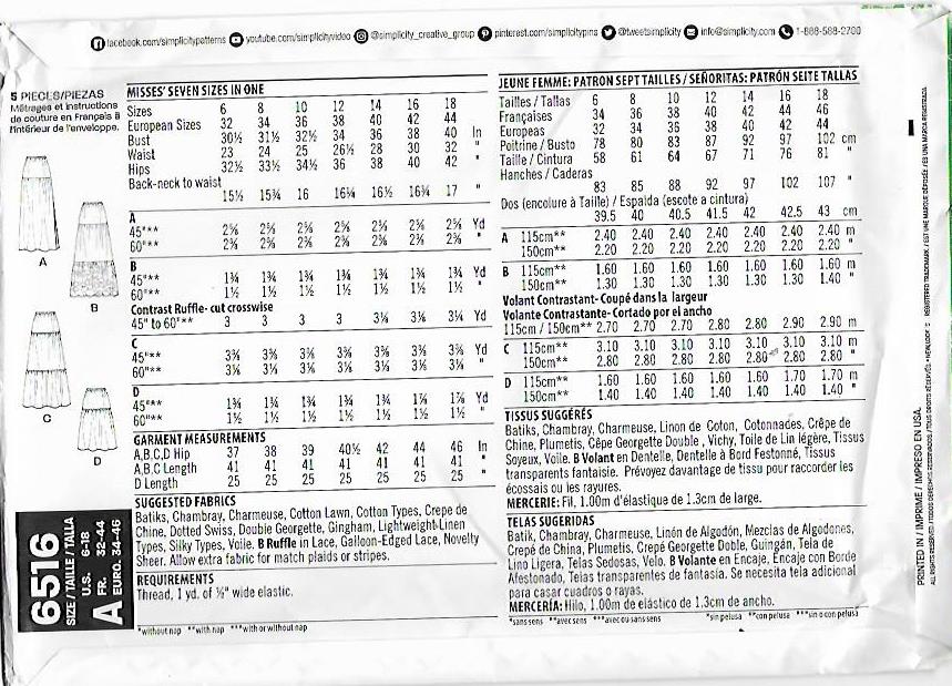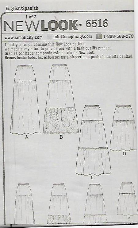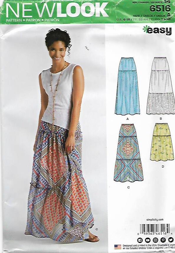 Misses peasant skirt in two lengths with ruffle and fabric options. Skirts feature an elastic waist for easy sewing and comfortable fit with choice of ruffles or a side slits. Make them unique with contrasting ruffle. New Look Patterns by Simplicity are always all sizes in one for one low price.