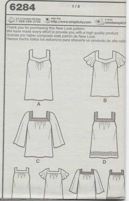Misses' pullover top in two lengths has neckline and sleeve variations. Make two types of square necklines and make top either sleeveless, with flutter sleeves or with three quarter sleeves.