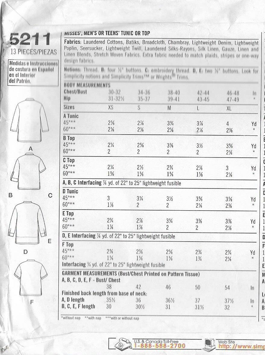 C115 SIMPLICITY 5211: MEN'S TOPS SIZE XS-M