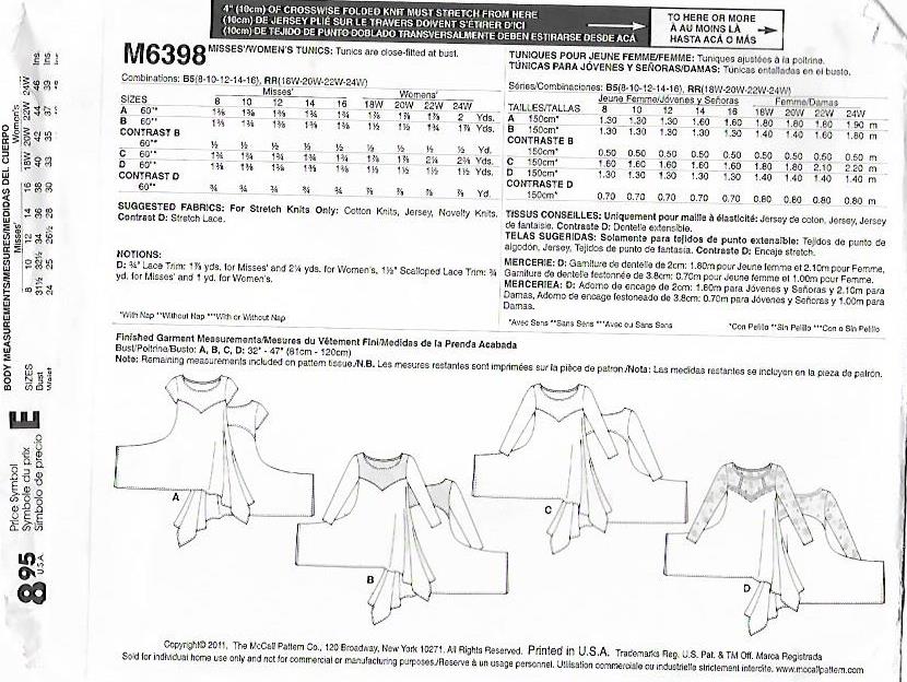 ©️2011. Misses Tunic Tops. Tunic is close fitted at top. Wide bottom, curved hem.