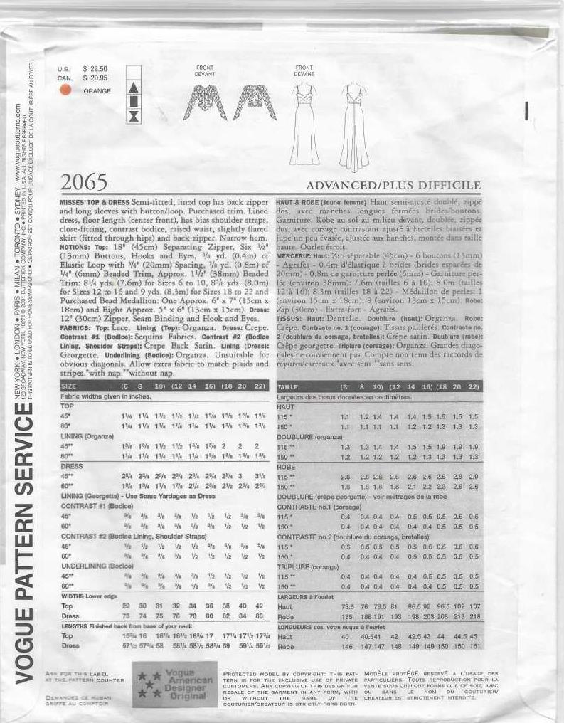 C134 VOGUE 2065: TOP & DRESS SIZE 6-10