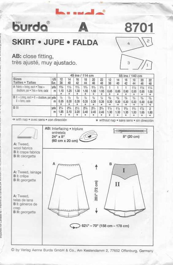 C208 BURDA 8701: SKIRT SIZE 12-22