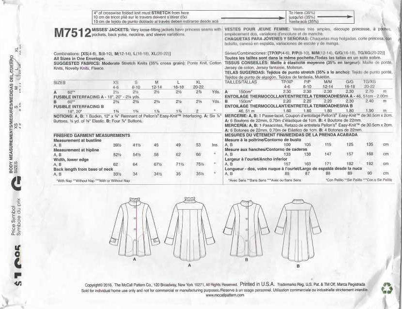 C357 McCALL'S M7512: JACKET SIZE 4-22